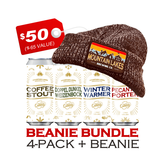 Got a beer-lover on your list? Or just want to get yourself one of these amazing Mountain Lakes beanies? Bundle your 2021 Holiday 4-Pack with the newest Mountain Lakes beanie and save $15.00!